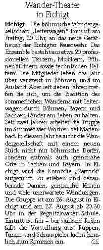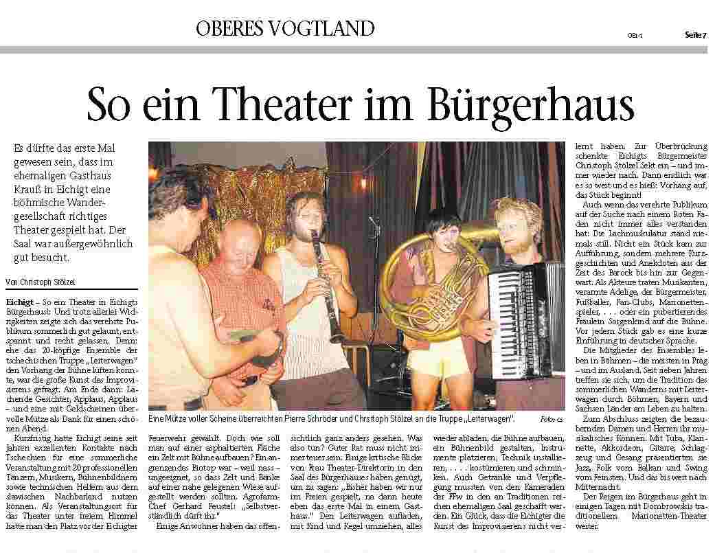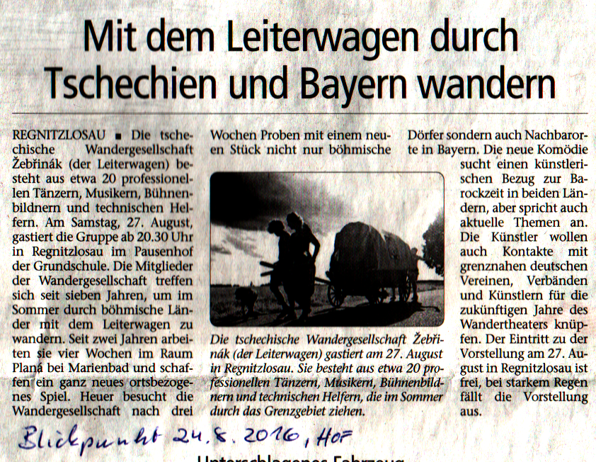 Das Theater wanderte im Jahr 2016 durch Westböhmen und Bayern.